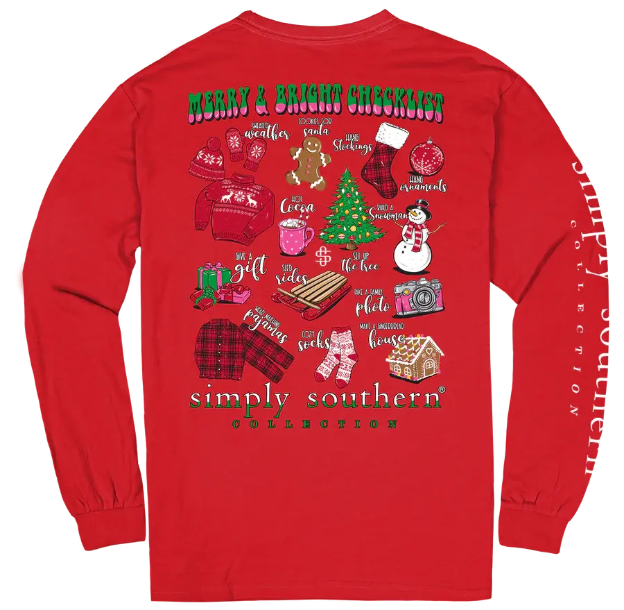 Simply Southern "Merry & Bright Checklist" Long Sleeve Tee Shirt